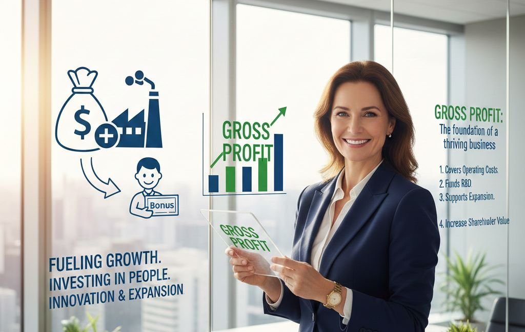 व्यवसाय की दुनिया में लाभ (Profit) सबसे महत्वपूर्ण तत्व है। किसी भी कंपनी की सफलता को मापने का पहला और बुनियादी पैमाना उसका ग्रॉस प्रॉफिट (Gross Profit) होता है। यह न केवल व्यवसाय की आर्थिक स्थिति को दर्शाता है, बल्कि यह भी बताता है कि कंपनी अपने संसाधनों का उपयोग कितनी कुशलता से कर रही है।